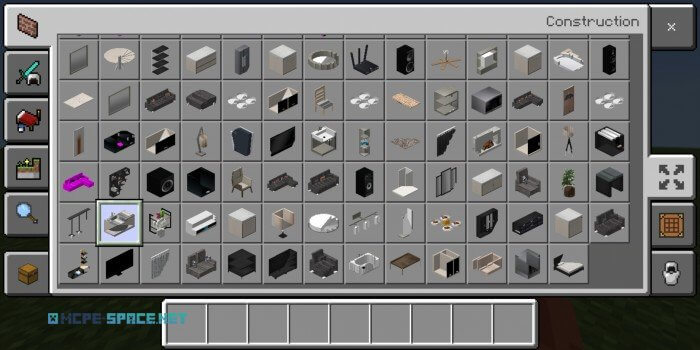 - फर्नीचर क्राफ्टिंग द्वारा प्राप्त किया जा सकता है (इसके लिए आपको Stonecutter की आवश्यकता होगी, जो इस मोड का हिस्सा है) — "Survival" मोड में या "Creativity" मोड में इन्वेंटरी से चुना जा सकता है;