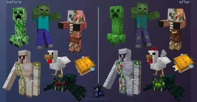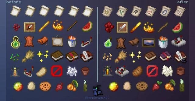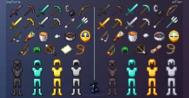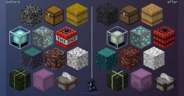 Stormilla टेक्सचर्स का एक बड़ा संग्रह आपको Minecraft में कई गेम आइटम्स को अपडेट और बेहतर बनाने की अनुमति देगा। साथ ही, ये टेक्सचर्स सामान्य ब्लॉक शैली को नहीं बदलते, जिससे गेम का मूल माहौल बरकरार रहता है। आपको ब्लॉक्स, हथियारों, मॉब्स और आइटम्स के लिए अपडेटेड और सुधारित मॉडल्स मिलेंगे — यह नया डिज़ाइन गेम की दुनिया के अनुभव को बदल देगा और इसे और भी सुखद बना देगा, क्योंकि कस्टम मॉडल्स में वे बग्स और खामियाँ नहीं हैं जो मूल में थीं।